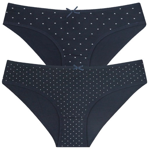 Śliczny zestaw 2 sztuk majtek w kolorze granatu przyozdobione białymi groszkami.
