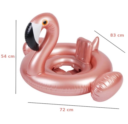 Różowe koło dmuchane z siedziskiem dla dzieci w kształcie flaminga, wykonane z wysokiej jakości plastiku PCV, gwarantującego wytrzymałość.