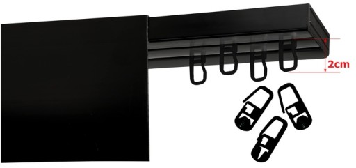- Szerokość szyny i rozmieszczenie torów zapobiega nachodzeniu zasłon na siebie, zapewniając płynne przesuwanie zasłon