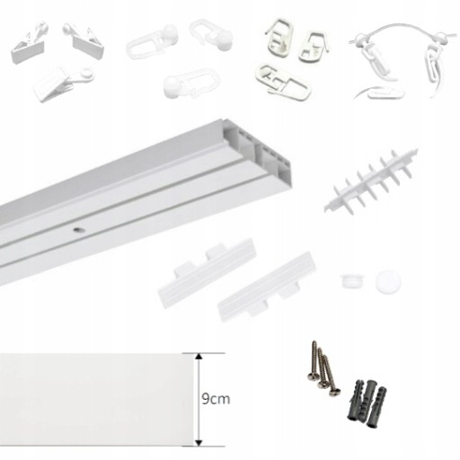 - Aukcja dotyczy 10 cm kompletnego karnisza sufitowego PCV z osłoną 9 cm wraz z pełnym wyposażeniem