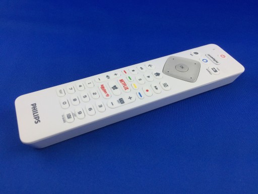 MUTE (wyłącznik głosu), TEXT (telegazeta), TV GUIDE (EPG elektroniczny przewodnik po programach), LIST (lista kanałów), NETFLIX, RakutenTV, AMBILIGHT oraz inne klawisze są łatwo rozpoznawalne na pilocie.
