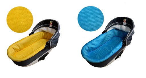 Wkładka --boczki wkładu mają długość: 110 cm i wysokość 30cm odległość od wycięć na budkę do krawędzi wkładu wynosi od 45 do 60 cm- wszyta guma umożliwiająca dopasowanie do gondoli