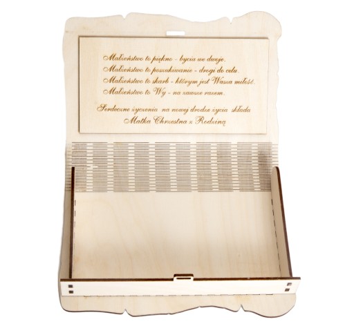 Pudełko wykonane ze sklejki o grubości 3mm , elementy wycinane i grawerowane laserowo