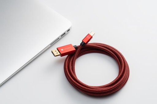 Wysokiej jakości kabel Mini DisplayPort -> DisplayPort innowacyjnej firmy iVANKY o długości 3 metrów w kolorze czerwonym.