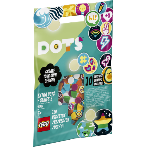 - Zestaw LEGO® DOTS Dodatki DOTS — seria 5 (41932) zachęca do wyrażania siebie i sprawi, że mali miłośnicy kreatywnych projektów będą w siódmym niebie. Zawartość woreczka to część niespodzianki!