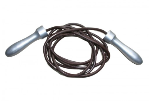 Skakanka bokserska SBS-R z łożyskiem z linką o długości 270 cm, wykonaną z grubego rzemienia, z wygodnymi profilowanymi, metalowymi rączkami.