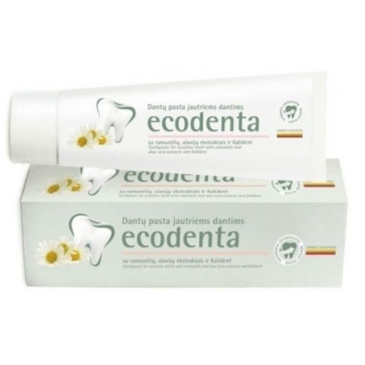 Зубная паста Ecodenta для чувствительных зубов с ромашкой.