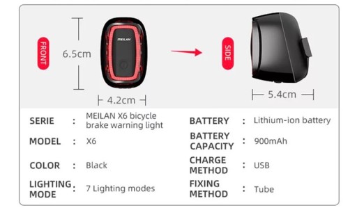 Meilan X6 inteligentna lampka rowerowa tylna z czujnikiem hamowania.