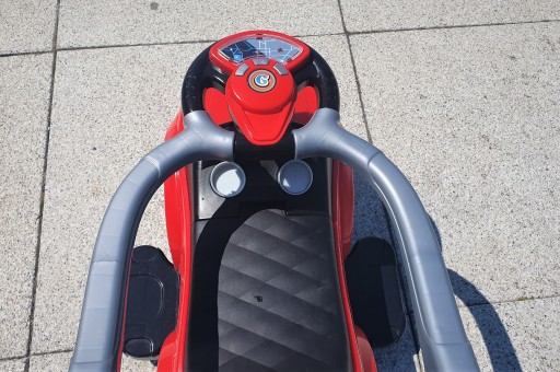 - Jeździk posiada duży otwierany kufer zlokalizowany pod siedziskiem