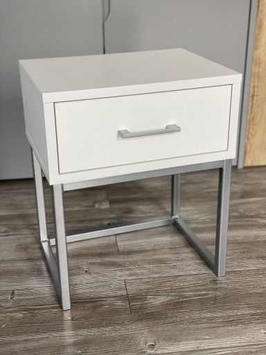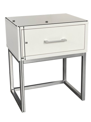 Szafka nocna Loft biała z dodatkami srebrnymi to uniwersalny produkt, który wpasuje się w niemal każdy styl. Kolorystyka szafki sprawi że wnętrze będzie wyróżniać się oryginalnością. Dzięki projektowi inspirowanego loftowym designem Twoja sypialnia, przedpokój, salon nabiorą funkcjonalności oraz wyjątkowości. Zastosowanie jednego koloru korpusu i ręcznie wykonanego stelażu to klucz do lekkiego, zgrabnego a zarazem eleganckiego look’u.
