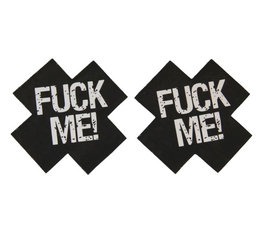 Czarne nasutniki z napisem FUCK ME. Nasutniki są jednorzowego użytku (max 2 razy). Przyklejane bezpośrednio do piersi za pomocą bezpiecznego, medycznego kleju. Zestaw zawiera jedną parę.