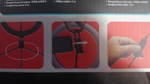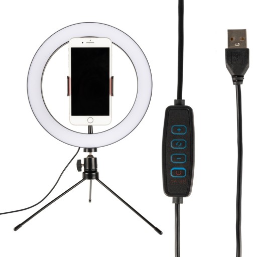 - Lampa pierścieniowa z dołączonym kablem USB i kontrolerem