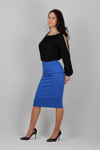 Spódnica wykonana jest z wysokogatunkowej dzianiny elastycznej. Materiał nie mechaci się ani nie "kulkuje". W pasie wszyta guma podwinięta do środka.