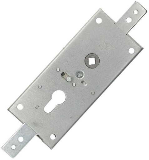Zamek do bram, garaży, drzwi uchylnych i magazynowych. Ryglowany w pionie, przeskok rygli - 2 cm.