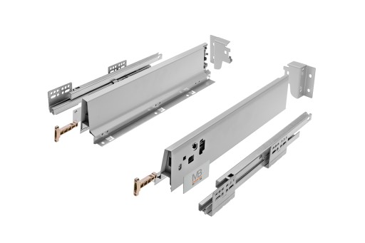 Jedne z najbardziej popularnych systemów szuflad na rynku. Szuflady charakteryzują się wysoką jakością wykonania, z regulacją pionową i poziomą i ładownością do 40kg.