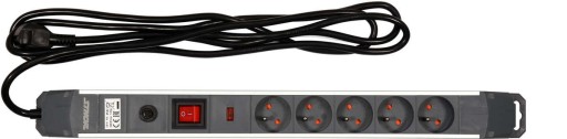 PRZEDŁUŻACZ LISTWA ZASILAJĄCA W ALUMINIOWEJ OBUDOWIE Z OCHRONĄ PRZECIWPRZEPIĘCIOWĄ I PRZECIĄŻENIOWĄ 5 GNIAZD Z UZIEMIENIEM WYŁĄCZNIK