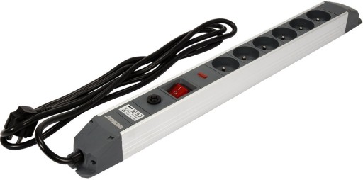 PRZEDŁUŻACZ LISTWA ZASILAJĄCA W ALUMINIOWEJ OBUDOWIE Z OCHRONĄ PRZECIWPRZEPIĘCIOWĄ I PRZECIĄŻENIOWĄ 6 GNIAZD Z UZIEMIENIEM WYŁĄCZNIK