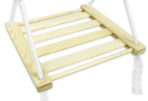 - huśtawka z drewnianym stelażem i sztywnym siedziskiem