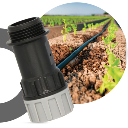 Dwa gwinty - zewnętrzny i wewnętrzny pozwala na błyskawiczne podłączenie do linii kroplującej. Wewnętrzna uszczelka skutecznie chroni przed przeciekami.