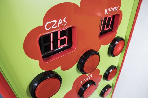 Kącik interaktywny obsługiwany za pomocą dużych świecących przycisków.