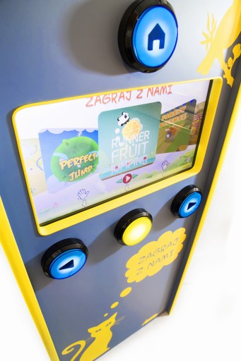 Kącik interaktywny obsługiwany za pomocą dużych świecących przycisków.