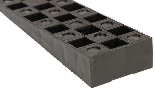 - Ząbkowana powierzchnia umożliwia łączenie klinów, zapobiega przesuwaniu się ich względem siebie oraz po podłożu.