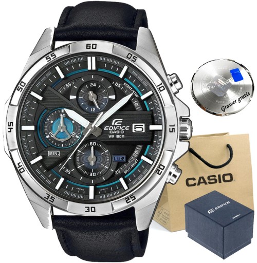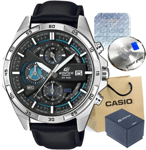 CASIO EDIFICE to linia sportowych zegarków marki CASIO. Design tej linii nawiązuje do motoryzacji ponieważ Edifice jest partnerem zespołu Red Bull Racing, a jego ambasadorami są Daniel Ricciardo i Sebastian Vettel - czterokrotny mistrz świata Formuły 1 z 2010, 2011, 2012 oraz z 2013 roku. Wszystkie zegarki tej linii w tym prezentowany model mają 10 atmosfer wodoszczelności, a ich koperty i bransolety/paski wykonane są z najwyższej jakości materiałów.