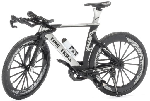 Doskonała replika roweru wyścigowego. Wysoka jakość użytych materiałów i duża precyzja odwzorowania poszczególnych części. Przedstawione zdjęcia są oryginalne, pokazując autentyczne kolory oraz zawartość modelu.
