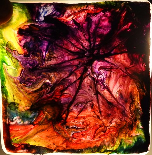 - Po dodaniu barwnika do żywicy łączy się z nią i unosi się pod powierzchnią. Po zastygnięciu, żywica jest zabarwiona pod powierzchnią, a pozostała część jest transparentna. (foto. poniżej, do porcji 20g żywicy dodano 2 krople barwnika)