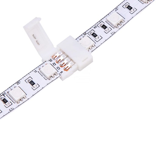 Złączka prosta służąca do łączenia dwóch odcinków taśmy LED RGB (wielokolorowych) 10 mm. Dzięki złączce uzyskamy szybkie połączenie listwy LED RGB bez konieczności jej lutowania. Złączka pasuje do taśm RGB SMD 5050 4PIN o szerokości 10 mm.