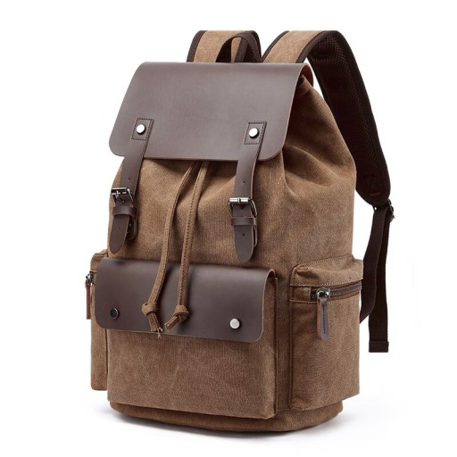 Plecak Markroyal na laptopa 15,6" vintage uszyto ze stylowego i wytrzymałego materiału płóciennego. Ciekawego charakteru nadają mu klapy wykonane z wodoodpornej i łatwej do czyszczenia ekoskóry oraz ozdobne klamry maskujące magnetyczne zatrzaski. Komora plecaka ma formę worka ściąganego troczkami. Wewnątrz znajduje się kieszeń na laptop w rozmiarze do 15,6" zabezpieczona elastyczną taśmą zapinaną na rzep oraz dwie mniejsze kieszonki. Z przodu plecaka znajduje się spora kieszeń zamykana na zatrzaski magnetyczne, natomiast po bokach umieszczono dwie kieszenie zapinane na zamki. Nad szelkami plecaka wyłożonymi miękką gąbką znajduje się uchwyt do przenoszenia plecaka w ręce.
