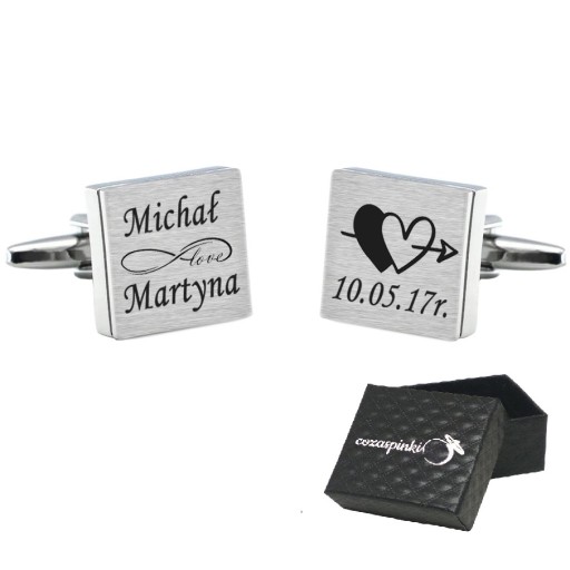 Spinki do mankietów koszuli IMIONA Z DATĄ + PUDEŁKO + GRATIS!