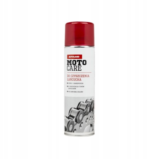 Czyści i odtłuszcza łańcuchy motocyklowe. Usuwa smary, pył z klocków hamulcowych, pozostałości olejów. Nie pozostawia osadów i nalotów. Nie zawiera rozpuszczalników chlorowych, silikonu i acetonu.