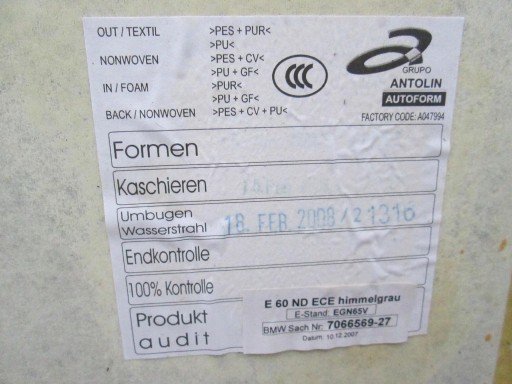 BMW E60 ОТДЕЛКА ПОТОЛКА СЕРАЯ ОБИВКА ПОТОЛКА