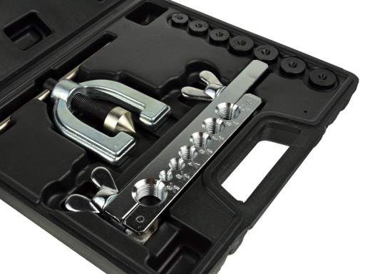 Zestaw do zarabiania przewodów hamulcowych i paliwowych. Nadaje się do cięcia i kielichowania miedzianych, mosiężnych, aluminiowych rurek i przewodów o ściankach o grubości do 1mm.