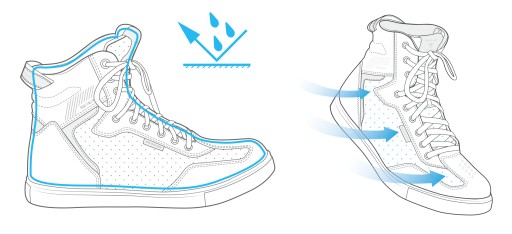 - WENTYLACJA - Wykonane z naturalnej skóry posiadają perforowane obszary, które pozwalają na swobodny przepływ powietrza i zapewniają lepszą kontrolę termiczną.