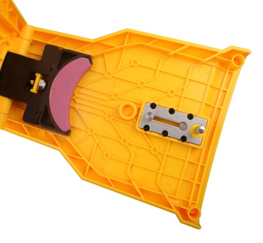 - Wykonana z lekkiego i wytrzymałego tworzywa sztucznego, co umożliwia szybkie naostrzenie łańcucha w przerwie od pracy.