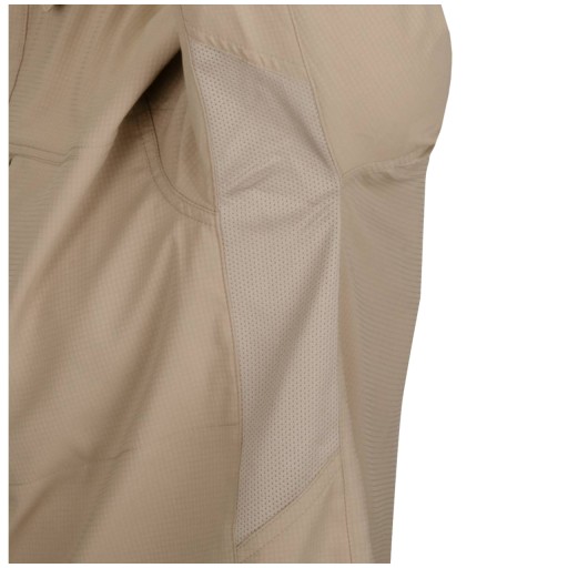 Materiał zabezpiecza przed promieniowaniem UV na poziomie UPF 30. Kołnierz z dodatkową patką można postawić, aby ochronić kark przed palącym słońcem, a łatwo podwijane rękawy oraz panele siatkowe pod pachami zapewnią ochłodę i wentylację, aby bez względu na charakter wyjazdu właściciel koszuli czuł się w niej naprawdę komfortowo. Zapinana jest na guziki przyszyte mocną taśmą.