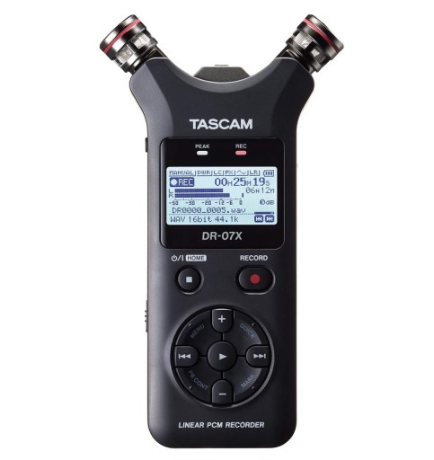 Tascam DR-07X zapewnia przenośne nagrania stereo w wysokiej jakości w formacie MP3 lub WAV - w rozdzielczości 96-kHz/24-bit - używając nośników microSD, microSDHC lub microSDXC. Para mikrofonów dookólnych wytrzymuje do 125 dB SPL z czułością pozwalającą uchwycić każdy detal. Użytkownik może użyć również własny mikrofon lub podłączyć źródło o poziomie liniowym poprzez złącze mini-jack stereo, które jest wyposażone w zasilanie do mikrofonów, które tego wymagają.