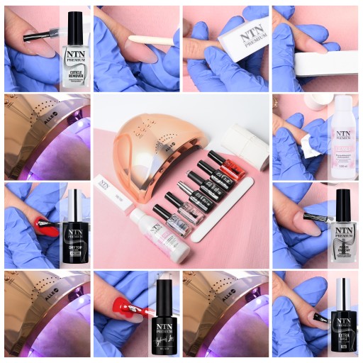 - Zaaplikuj dwie cienkie warstwy wybranego lakieru kolorowego NTN - każdą z nich utwardź w lampie minimum 30 sekund