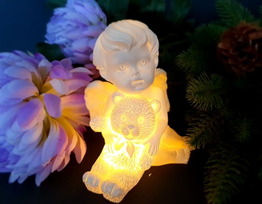 Dzięki zastosowaniu energooszczędnej diody Led jako źródło światła prezentuje niesamowity efekt oświetlając postać aniołka światłem w kolorze ciepłej bieli.