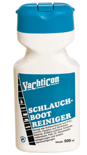 Yachticon Schlauchboot Reiniger – Łatwo czyści i przywraca oryginalny kolor zabrudzonym pontonom z PCV, Hypalonu i innych podobnych materiałów. Bez trudu usuwa brud, plamy, oleje i zabrudzenia linii wodnej. Łatwy w aplikacji wystarczy nanieść produkt, poczekać aż uwolni brud i spłukać. Przywraca elastyczność powłoki i zapobiega jej pękaniu.