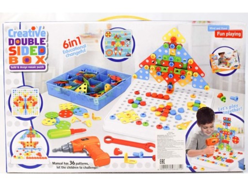 Zestaw do montażu/mozaiki pozwala tworzyć i kreować obrazki płaskie lub przestrzenne.