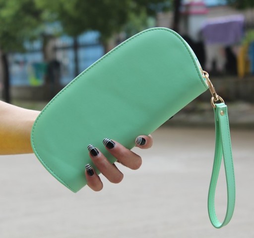 Portfel posiada dłuższy pasek, przez co może być noszony jako torebka. Zamykany na suwak.