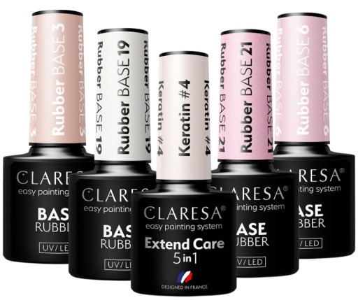 ZESTAW OBEJMUJE 4 BAZY KAUCZUKOWE RUBBER BASE ORAZ 1 BAZĘ KERATIN - NOWOŚĆ MARKI CLARESA