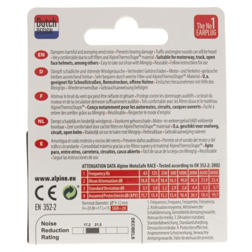 Wartości tłumienia Alpine MotoSafe Race :