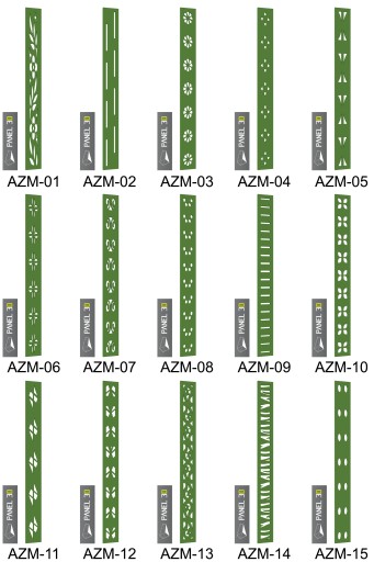 Prezentowane poniżej panele ażurowe występują w wymiarze 90 x 200 cm ( CLASSIC, GEOMETRY, REMIX ), 50 x 200 cm (SLIM), 20x200 cm (MINI)