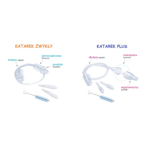 Katarek Standard to aspirator kataru stosowany u dzieci od pierwszych dni życia podczas infekcji, objawiającej się katarem. Aspirator podłączany jest do odkurzacza o mocy 600-1800W, dzięki czemu wytwarzana jest jednostajna siła ssąca. Urządzenie jest skuteczne na każdy rodzaj kataru także gęsty, głęboko zalegający z którym nie radzą sobie inne rodzaje aspiratorów.