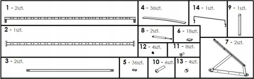 - profile wzdłużne i poprzeczne , śruby do skręcenia tych profili ze sobą oraz zaślepki