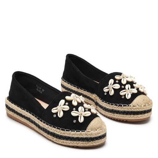 CZARNE DAMSKIE ESPADRYLE Z OZDOBAMI IZIRA